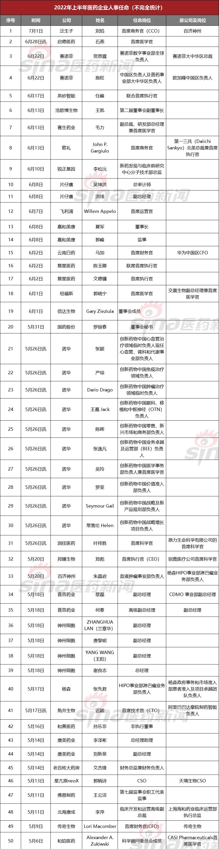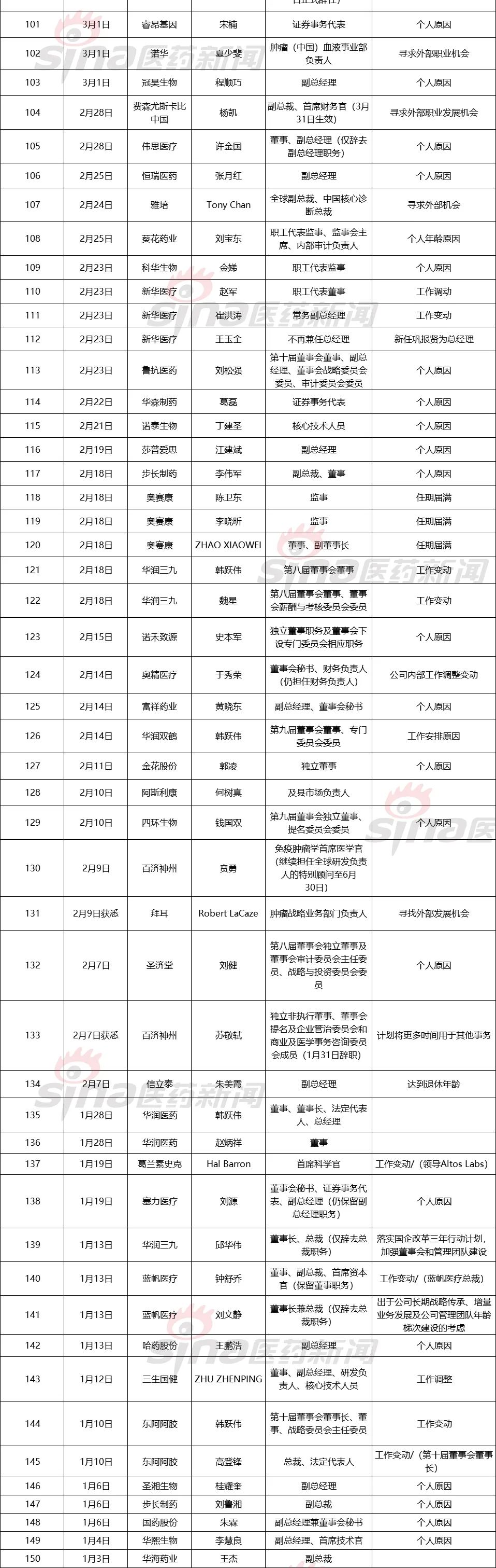2022年上半年150位药企高管离职,多家企业换帅