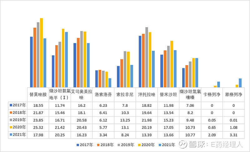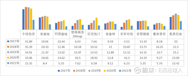 如果原来市场规模较大,通常也会和原研药一样,发生市场规模和市场份额双双下降。只有极个别产品如乐普的阿托伐他汀,在2021年重新回升到2019年的市场规模。