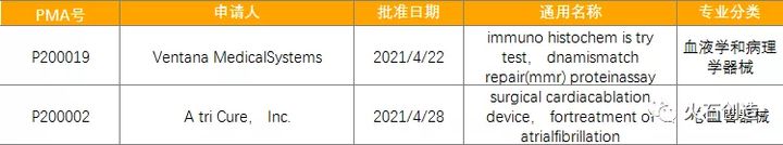 表4:2021年4月PMA首次批准的器械
