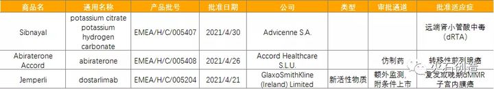 表2:2021年04月EMA批准的药物列表