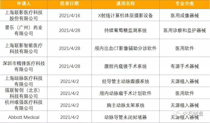 表6:2021年4月获批上市的创新医疗器械