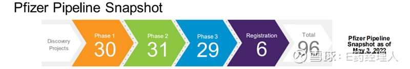 根据辉瑞此前公布的管线情况来看,截至2022年5月3日,辉瑞共有96条在研管线,其中,炎症领域20条,内科领域14条,肿瘤领域30条,罕见病领域11条,疫苗领域15条。
