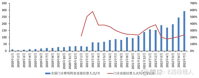 2022年7月,全国住院费用跨省直接结算57.34万人次,同比增加28%,环比增加21%,创历史新高。