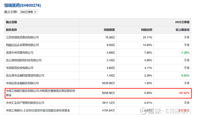 值得注意的是,“医药女神”葛兰执掌的中欧医疗健康混合基金三季度同样大手笔对恒瑞进行增持,成为恒瑞医药第8大股东。