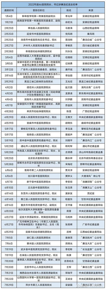 行业“黑洞”之下,与之相较量的监管力度也在不断进化。据不完全统计,仅2021年上半年,就有至少40余位医疗机构大小领导因受贿落马。进入2022年后,医疗反腐力度更是全方位在加强。