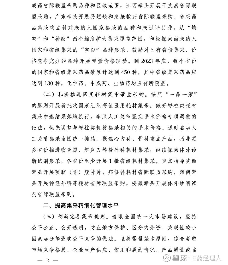 并且明确各省集采的重点,重点指导陕西牵头开展硬脑(脊)膜补片、疝修补耗材省际联盟采购,河南牵头开展神经外科等耗材省际联盟采购,安徽牵头开展体外诊断试剂省际联盟采购。