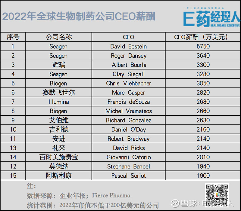 如果将围绕CEO薪酬的统计拉回10年前,据Fierce Pharma的统计,2012年时,全球只有5位药企的CEO年薪超过1800万美元。