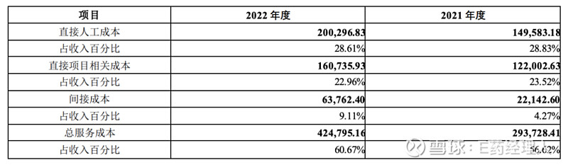 营收增加,净利润下降,并非是由于成本上升——报告期内,总服务成本占收入百分比仅上升了4%——而是在于“公允价值损益”项目的变动:2022年,泰格医药的公允价值变动损益为5.36亿元,占利润总额的20.73%;2021年,该科目数据为18.15亿元,占利润总额的49.27%。