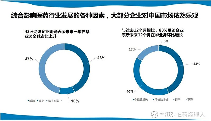 虽然行业仍未回暖,但综合影响医药行业发展的各种因素,大部分企业对中国市场依然乐观。伴随人口的老龄化、不断增长的医疗健康支出,以及中国医疗科技和研发能力的长足进展,中国的医药健康市场依然充满机会。
