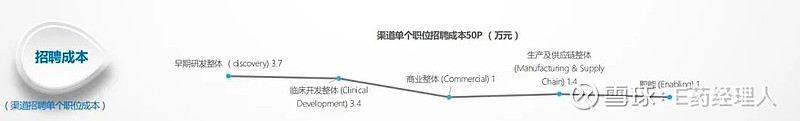 职能间比较来看,渠道成本支出分布与人才获取难度及同类岗位频次高低直接相关猎头依然是各职能占比最高支出,较其他职能而言,商业职能支出了更多的成本在内部推荐。研发、临床职能招聘成本领先于各职能,商业职能大量人员通过转岗、内推。