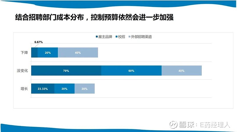 从2022年年报和2023年半年报透露出的信息来看,不难发现,药企们达成了极为一致的策略:降本、增效。为更好支持组织发展,招聘部门面临新挑战。如何定义并有效识别满足组织未来发展人才成为各公司招聘部门重点关注内容。结合招聘部门成本分布,控制预算依然会进一步加强。
